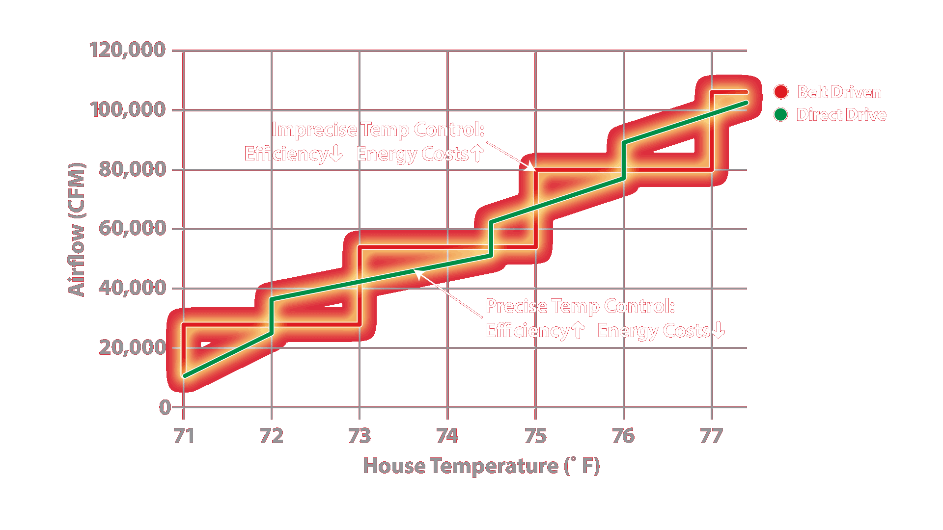 With flock health riding on ventilation consistency and your operation’s success dependent on cost efficiency, direct-drive fans outperform in every way.