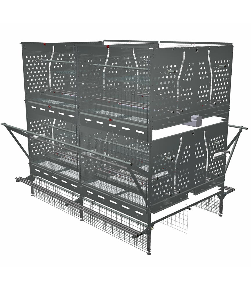 - Las plataformas de altura ajustable y las líneas de bebida dentro del sistema se elevan gradualmente a medida que las pollitas crecen.